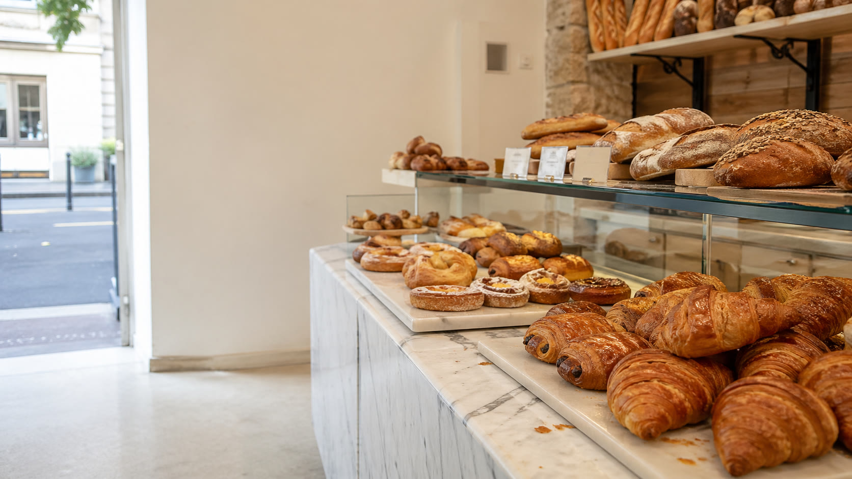 Pétri, façonné et cuit sur place dès l'aube. Aucun produit congelé, aucun précuit.